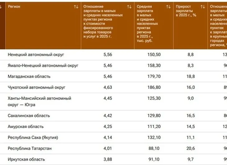 Выше оказались только северные регионы: Чукотка, Магаданская область, Ямал и Ненецкий округ. Именно там фиксируются самые высокие доходы по стране.