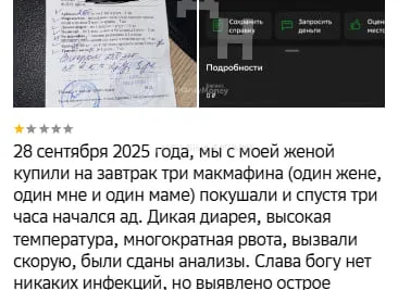 Житель Сургута заявил об остром пищевом отравлении после посещения ресторана "Вкусно - и точка". По словам мужчины, 28 сентября его семья приобрела макмаффины в филиале на улице Университетская, 29/3. Уже через три часа он почувствовал себя плохо, появились диарея, рвота и поднялась высокая температура.